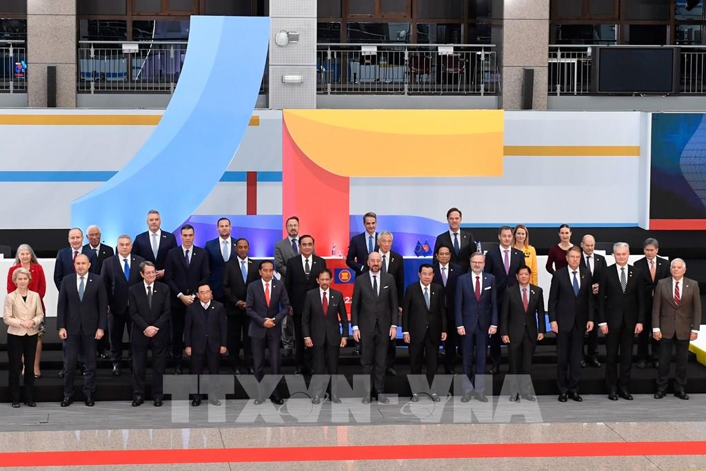 Ngày 14/12/2022, Hội nghị Cấp cao kỷ niệm 45 năm quan hệ Hiệp hội các quốc gia Đông nam Á (ASEAN) và Liên minh châu Âu (EU) đã diễn ra ở Brussels (Bỉ). Hướng tới tương lai, hai bên nhất trí cần làm sâu sắc hơn nữa quan hệ Đối tác chiến lược thiết lập năm 2020 trên cơ sở đề cao luật pháp quốc tế, hợp tác bình đẳng và cùng có lợi, thúc đẩy phục hồi, phát triển xanh và bền vững. AFP/TTXVN