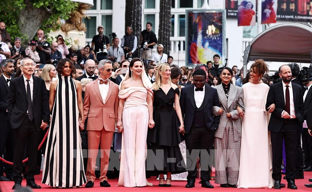 Liên hoan phim (LHP) Cannes lần thứ 78, sự kiện điện ảnh danh giá bậc nhất hành tinh, diễn ra từ ngày 13 đến 24/5/2025 tại Cannes, Pháp. Năm nay, 22 tác phẩm điện ảnh đầy hứa hẹn sẽ bước vào một cuộc tranh tài nghệ thuật kịch tính, với mục tiêu cao nhất - Cành cọ Vàng danh giá. Ảnh: Các thành viên ban giám khảo trên thảm đỏ LHP Cannes lần thứ 78, ngày 13/5/2024. THX/TTXVN