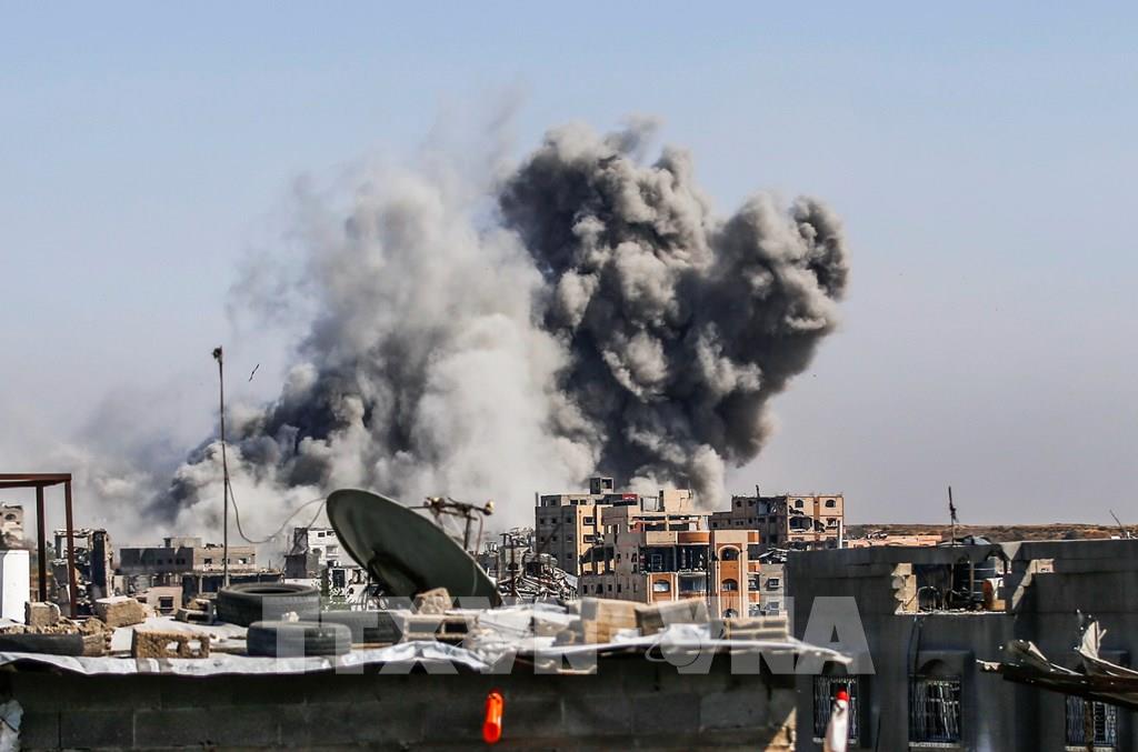 Quân đội Israel ngày 13/5/2025 thông báo nước này đã nối lại hoạt động quân sự tại Gaza bằng một cuộc không kích vào Bệnh viện Nasser ở thành phố Khan Yunis – nơi bị cáo buộc là trung tâm chỉ huy của Hamas. Ảnh: Khói bốc lên sau vụ ném bom của Israel tại Gaza. THX/TTXVN