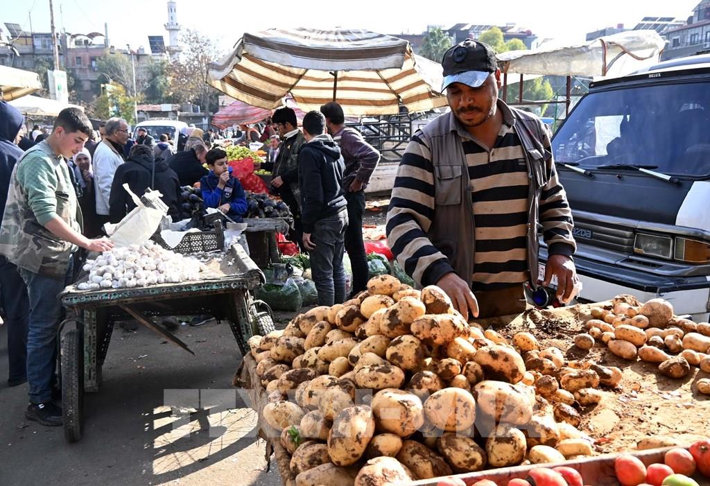 Phát biểu tại diễn đàn đầu tư Mỹ-Saudi Arabia ở Riyadh, Saudi Arabia (Ảrập Xêút), Tổng thống Mỹ Donald Trump tuyên bố sẽ dỡ bỏ toàn bộ các lệnh trừng phạt nhằm vào Syria, nhấn mạnh hiện tại “là lúc để Syria tiến về phía trước”. Ảnh: Người dân tại một khu chợ ở Damascus, Syria. THX/TTXVN