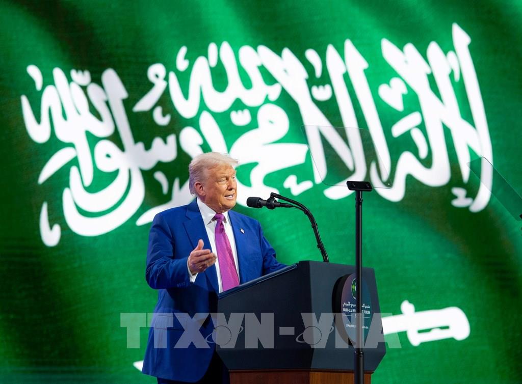 Phát biểu tại diễn đàn đầu tư Mỹ-Saudi Arabia ở Riyadh, Saudi Arabia (Ảrập Xêút), Tổng thống Mỹ Donald Trump tuyên bố sẽ dỡ bỏ toàn bộ các lệnh trừng phạt nhằm vào Syria, nhấn mạnh hiện tại “là lúc để Syria tiến về phía trước”. Ảnh: THX/TTXVN