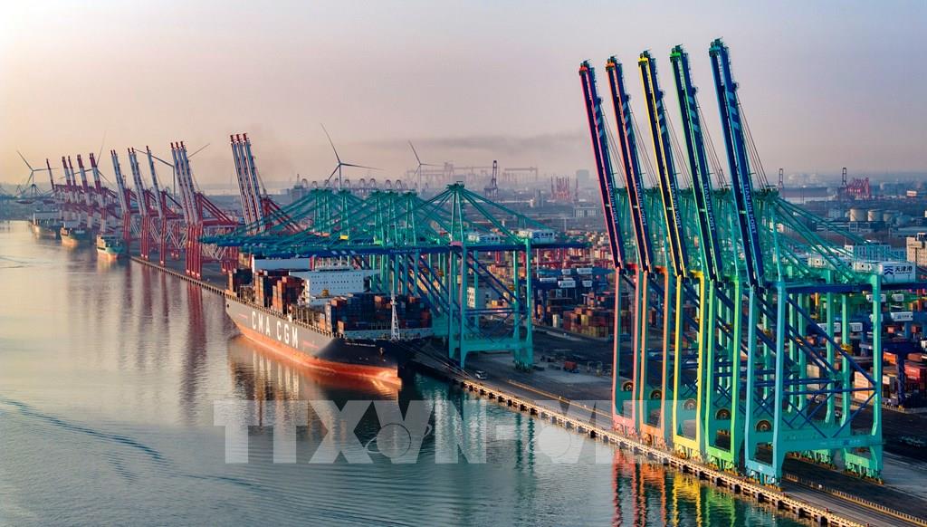 Mỹ và Trung Quốc ngày 11/5/2025 đã đạt được nhất trí về việc giảm thuế đánh vào hàng hóa của nhau sau khi phái đoàn hai nước kết thúc cuộc đàm phán cấp cao 2 ngày ở Geneva, Thụy Sĩ. Cụ thể, Mỹ giảm thuế đối với hàng hóa Trung Quốc từ 145% xuống còn 30% trong 90 ngày. Đổi lại, Trung Quốc giảm thuế đối với hàng hóa Mỹ từ 125% xuống 10% trong cùng thời gian trên. Hai bên cam kết thực hiện đầy đủ các biện pháp trên trước ngày 14/5 và kéo dài trong 90 ngày. Ảnh: Quang cảnh cảng hàng hóa tại Thiên Tân, Trung Quốc. THX/TTXVN