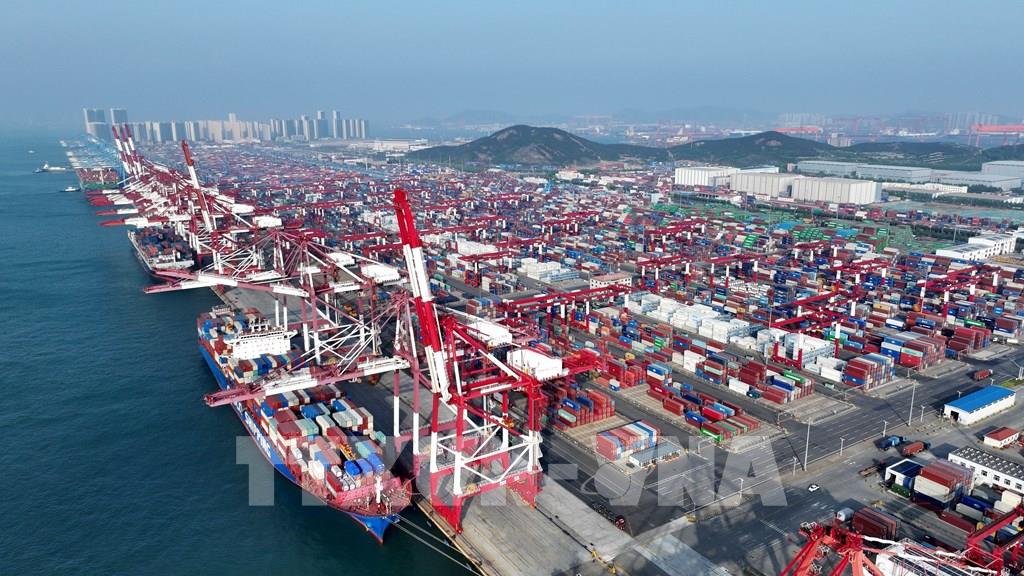 Mỹ và Trung Quốc ngày 11/5/2025 đã đạt được nhất trí về việc giảm thuế đánh vào hàng hóa của nhau sau khi phái đoàn hai nước kết thúc cuộc đàm phán cấp cao 2 ngày ở Geneva, Thụy Sĩ. Cụ thể, Mỹ giảm thuế đối với hàng hóa Trung Quốc từ 145% xuống còn 30% trong 90 ngày. Đổi lại, Trung Quốc giảm thuế đối với hàng hóa Mỹ từ 125% xuống 10% trong cùng thời gian trên. Hai bên cam kết thực hiện đầy đủ các biện pháp trên trước ngày 14/5 và kéo dài trong 90 ngày. Ảnh: Quang cảnh cảng hàng hóa tại Thanh Đảo, tỉnh Sơn Đông, Trung Quốc. THX/TTXVN