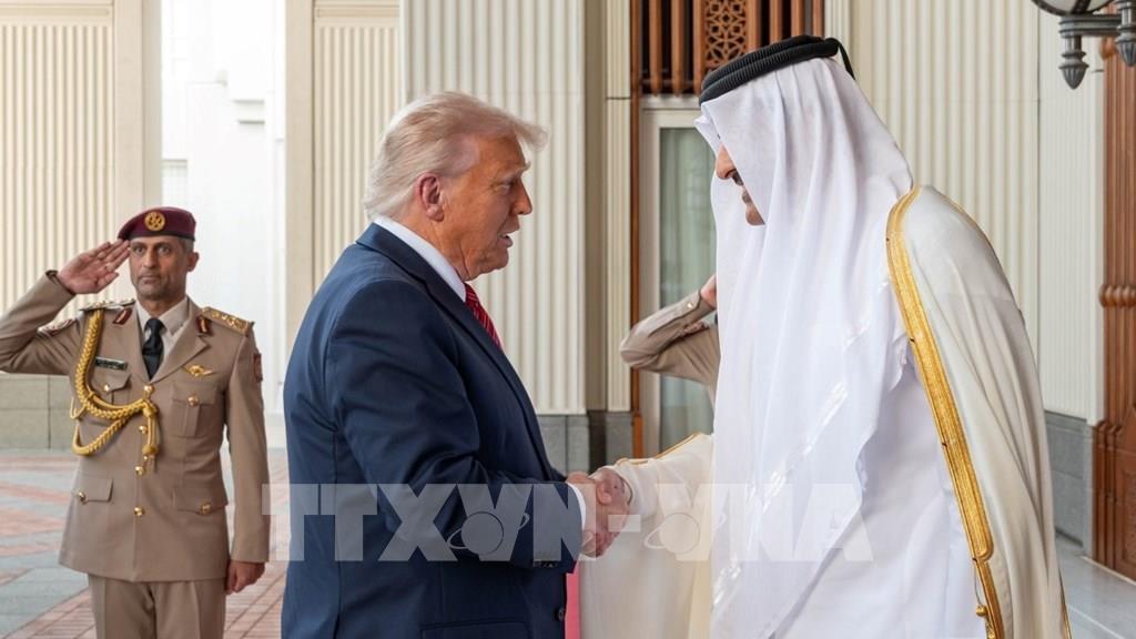 Tổng thống Mỹ Donald Trump đã chọn 3 quốc gia Vùng Vịnh là điểm đến trong chuyến công du nước ngoài chính thức đầu tiên của nhiệm kỳ 2, thể hiện ưu tiên rõ ràng trong chính sách đối ngoại của Nhà Trắng. Chuyến thăm mang theo nhiều thông điệp, không chỉ nhằm tìm kiếm các thỏa thuận kinh tế quy mô lớn, mà còn tái khẳng định cam kết của Washington với các đồng minh then chốt, cũng như với an ninh và địa chính trị tại khu vực “điểm nóng” này. Ảnh: Tổng thống Mỹ Donald Trump (giữa) và Quốc vương Qatar Sheikh Tamim bin Hamad Al-Thani tại cuộc gặp ở Doha ngày 14/5/2025. THX/TTXVN