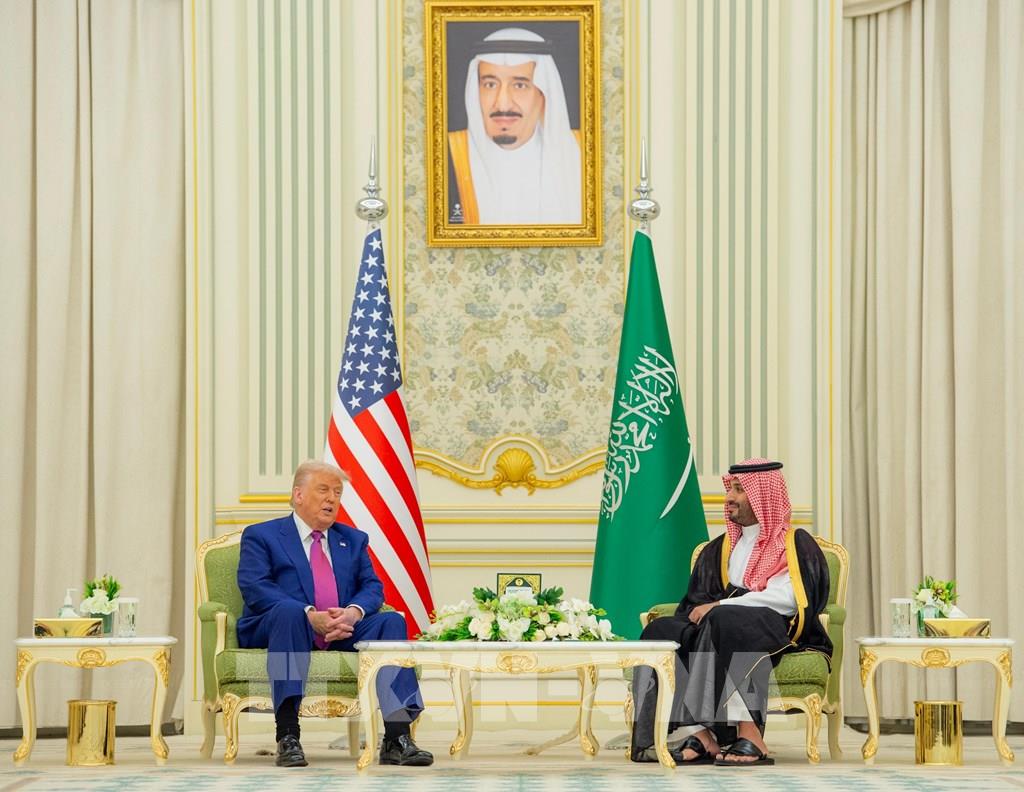 Tổng thống Mỹ Donald Trump đã chọn 3 quốc gia Vùng Vịnh là điểm đến trong chuyến công du nước ngoài chính thức đầu tiên của nhiệm kỳ 2, thể hiện ưu tiên rõ ràng trong chính sách đối ngoại của Nhà Trắng. Chuyến thăm mang theo nhiều thông điệp, không chỉ nhằm tìm kiếm các thỏa thuận kinh tế quy mô lớn, mà còn tái khẳng định cam kết của Washington với các đồng minh then chốt, cũng như với an ninh và địa chính trị tại khu vực “điểm nóng” này. Ảnh: Tổng thống Mỹ Donald Trump (trái) và Thái tử Saudi Arabia (Ảrập Xêút) Mohammed bin Salman Al Saud tại cuộc gặp ở Riyadh ngày 13/5/2025. THX/TTXVN