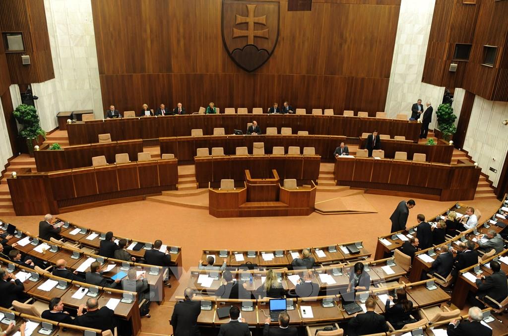Ngày 15/6/2023, Chính phủ của Thủ tướng Slovakia Ludovit Odor đã thất bại trong cuộc bỏ phiếu tín nhiệm tại Quốc hội khi chỉ nhận được 34 phiếu ủng hộ trong tổng số 136 nghị sĩ có mặt. Căn cứ Hiến pháp Slovakia, Tổng thống Slovakia Zuzana Caputova sẽ giải tán Nội các và giao nhiệm vụ cho Chính phủ tạm quyền với quyền lực hạn chế. Ảnh: Toàn cảnh một phiên họp Quốc hội của Slovakia ở thủ đô Bratislava. Ảnh: AFP/TTXVN