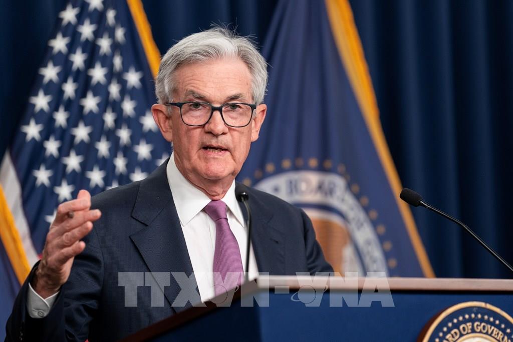 Ngày 14/6/2023, sau cuộc họp chính sách kéo dài 2 ngày, Cục Dự trữ liên bang Mỹ (Fed) đã quyết định giữ nguyên lãi suất, chấm dứt chuỗi 10 lần tăng lãi suất liên tiếp được Fed đưa ra nhằm kiềm chế lạm phát, giúp giữ nguyên lãi suất chính sách của Mỹ trong phạm vi từ 5,00% - 5,25%. Trong khi đó, ngày 15/6, Ngân hàng trung ương châu Âu (ECB) đã quyết định nâng lãi suất lần thứ 8 liên tiếp, thêm 25 điểm cơ bản, lên mức 3,5% - mức cao nhất trong 22 năm qua. Ảnh: Chủ tịch Fed Jerome Powell phát biểu tại cuộc họp báo ở Washington, DC, Mỹ ngày 14/6/2023. Ảnh: THX/TTXVN