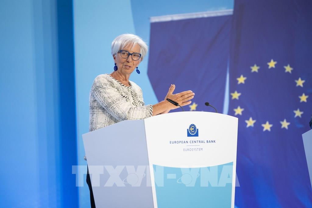 Ngày 14/6/2023, sau cuộc họp chính sách kéo dài 2 ngày, Cục Dự trữ liên bang Mỹ (Fed) đã quyết định giữ nguyên lãi suất, chấm dứt chuỗi 10 lần tăng lãi suất liên tiếp được Fed đưa ra nhằm kiềm chế lạm phát, giúp giữ nguyên lãi suất chính sách của Mỹ trong phạm vi từ 5,00% - 5,25%. Trong khi đó, ngày 15/6, Ngân hàng trung ương châu Âu (ECB) đã quyết định nâng lãi suất lần thứ 8 liên tiếp, thêm 25 điểm cơ bản, lên mức 3,5% - mức cao nhất trong 22 năm qua. Ảnh: Chủ tịch ECB Christine Lagarde phát biểu tại cuộc họp báo ở Frankfurt, Đức ngày 15/6/2023. Ảnh: THX/TTXVN