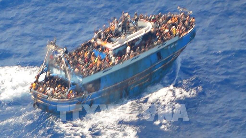 Ngày 14/6/2023, giới chức Hy Lạp cho biết có ít nhất 79 người thiệt mạng trong vụ tàu đánh cá chở người di cư bị lật và chìm ở ngoài khơi nước này cùng ngày. Hiện lực lượng cứu hộ đã giải cứu được hơn 100 người và hàng trăm người có thể còn mất tích trong vụ tai nạn này. Ảnh: Tàu chở người di cư trên vùng biển ngoài khơi Hy Lạp, ngày 14/6/2023. Ảnh: AFP/TTXVN