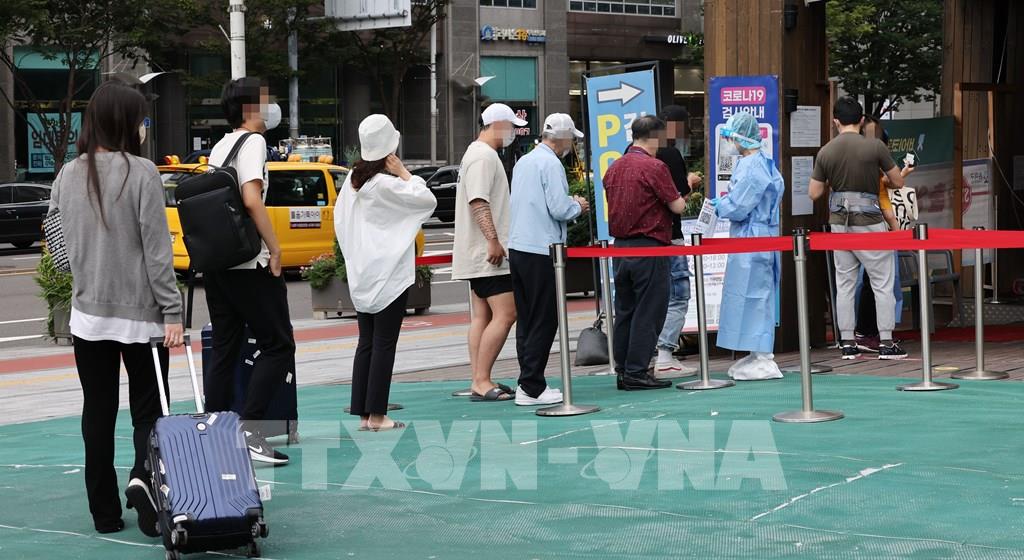 Ngày 14/9/2022, Tổng Giám đốc Tổ chức Y tế thế giới (WHO) Tedros Adhanom Ghebreyesus nhận định thế giới đang ở thời điểm thuận lợi nhất để chấm dứt đại dịch COVID-19, vốn đã cướp đi sinh mạng của 6 triệu người, và mục tiêu này hoàn toàn trong tầm tay. Trong ảnh: Người dân xếp hàng chờ xét nghiệm COVID-19 tại Seoul, Hàn Quốc, ngày 13/9/2022. Ảnh: Yonhap/ TTXVN