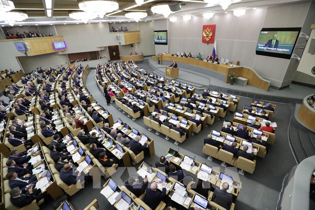 Ngày 16/2/2023, Duma Quốc gia (Hạ viện Nga) đã thông qua dự luật chấm dứt Quy chế của Hội đồng châu Âu tại Nga và rút khỏi 21 thỏa thuận quốc tế với Hội đồng này. Động thái trên diễn ra sau khi Hội đồng châu Âu chấm dứt tư cách thành viên của Nga trong tổ chức này. Trong ảnh (tư liệu): Toàn cảnh một phiên họp Hạ viện Nga ở Moskva. Ảnh: AFP/TTXVN