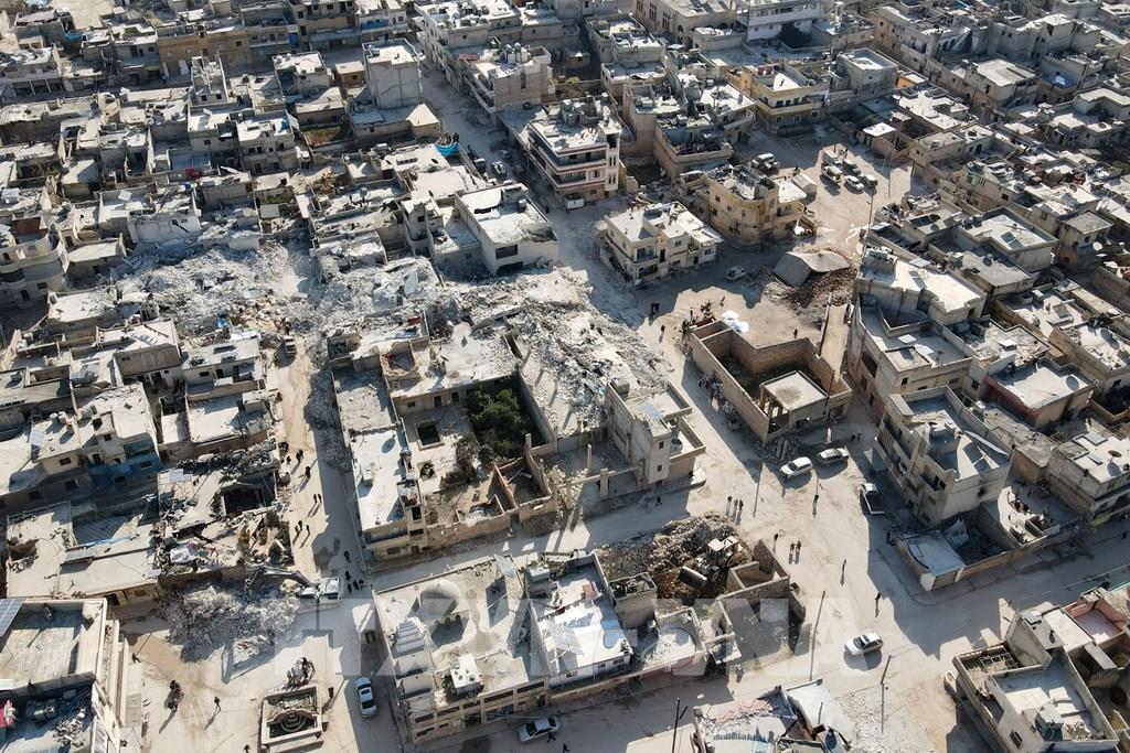 Tính đến sáng 17/2/2023, số nạn nhân thiệt mạng trong trận động đất kinh hoàng tại Thổ Nhĩ Kỳ và Syria đã lên tới hơn 42.000 người, trong đó tại Thổ Nhĩ Kỳ là 36.187 người, và Syria là hơn 5.800 người. Trong ảnh: Các tòa nhà bị phá hủy sau trận động đất tại Aleppo, Syria, ngày 14/2/2023. Ảnh: AFP/ TTXVN