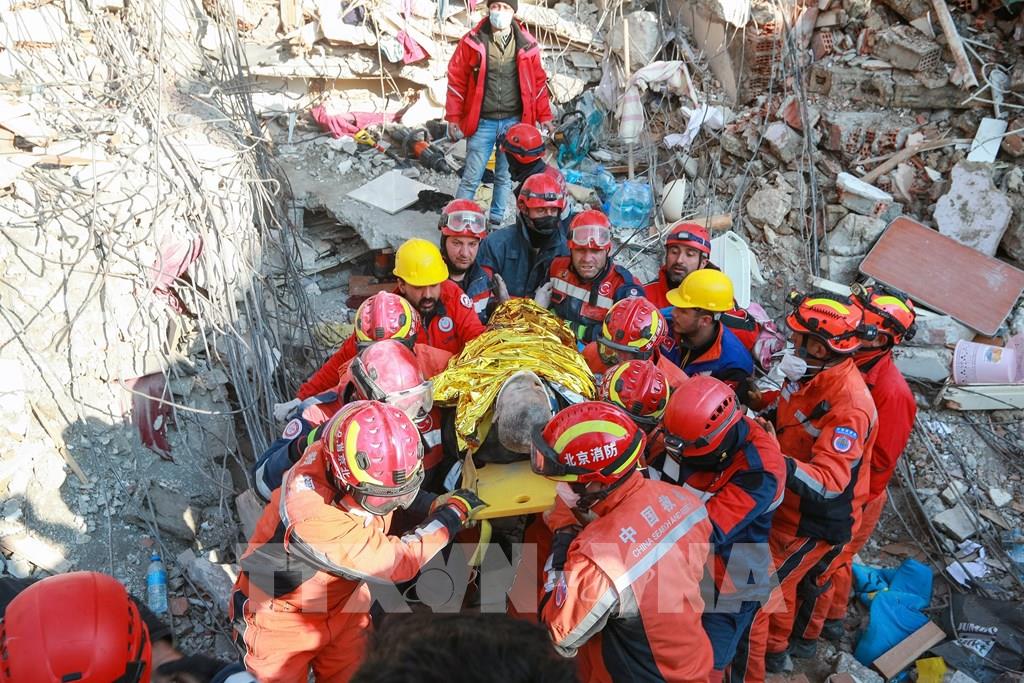 Tính đến sáng 17/2/2023, số nạn nhân thiệt mạng trong trận động đất kinh hoàng tại Thổ Nhĩ Kỳ và Syria đã lên tới hơn 42.000 người, trong đó tại Thổ Nhĩ Kỳ là 36.187 người, và Syria là hơn 5.800 người. Trong ảnh: Lực lượng cứu hộ giải cứu nạn nhân khỏi đống đổ nát sau trận động đất ở Antakya, tỉnh Hatay, Thổ Nhĩ Kỳ, ngày 12/2/2023. Ảnh: THX/ TTXVN