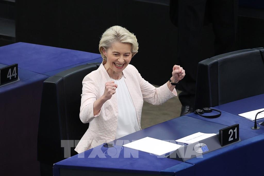 Đến ngày 18/7/2024, Liên minh châu Âu đã kiện toàn các vị trí lãnh đạo chủ chốt, theo đó bà Ursula von der Leyen (ảnh), 65 tuổi, được các nhà lập pháp EU phê chuẩn tiếp tục giữ chức Chủ tịch Ủy ban châu Âu (EC) thêm một nhiệm kỳ 5 năm với 401 phiếu thuận, 284 phiếu chống và 15 phiếu trắng. Trước đó, chính trị gia người Malta, bà Roberta Metsola cũng tái đắc cử nhiệm kỳ thứ hai chức Chủ tịch Nghị viện châu Âu (EP) với 562 phiếu bầu. Ảnh: THX/TTXVN