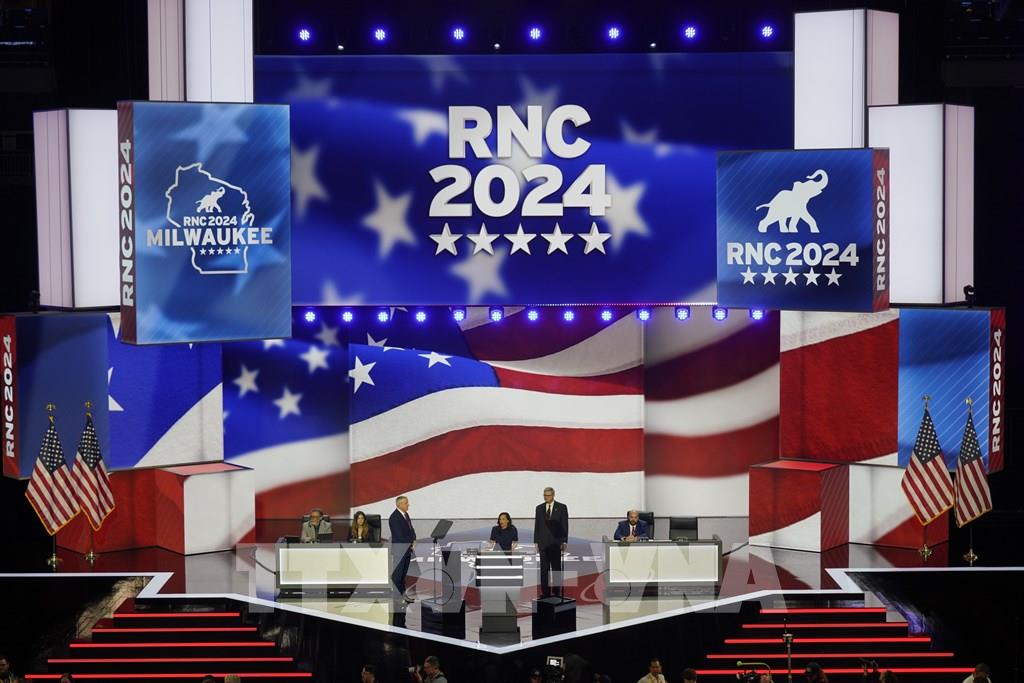 Ngày 15/7/2024, Đại hội toàn quốc đảng Cộng hòa của Mỹ (ảnh), diễn ra ở thành phố Milwaukee, bang Wisconsin, đã thông qua Cương lĩnh năm 2024, trong đó có những thay đổi về một số vấn đề đối nội và đối ngoại. Đại hội cũng chính thức bầu ông Donald Trump làm ứng viên đại diện cho đảng trong cuộc bầu cử Tổng thống năm 2024. Ảnh: THX/TTXVN