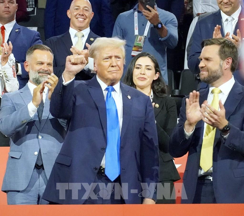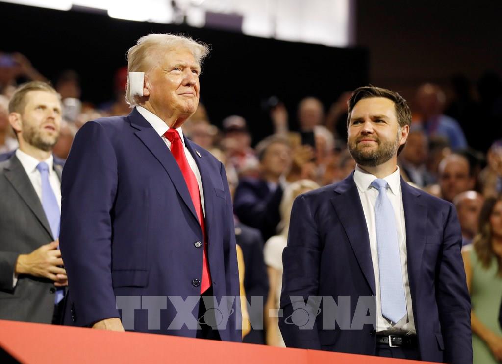 Ngày 15/7/2024, Đại hội toàn quốc đảng Cộng hòa của Mỹ, diễn ra ở thành phố Milwaukee, bang Wisconsin, đã thông qua Cương lĩnh năm 2024, trong đó có những thay đổi về một số vấn đề đối nội và đối ngoại. Đại hội cũng chính thức bầu ông Donald Trump (ảnh, trái) làm ứng viên đại diện cho đảng trong cuộc bầu cử Tổng thống năm 2024. Thượng nghị sĩ bang Ohio J.D. Vance (phải) được đề cử làm người liên danh tranh cử của ông Trump. Ảnh: THX/TTXVN