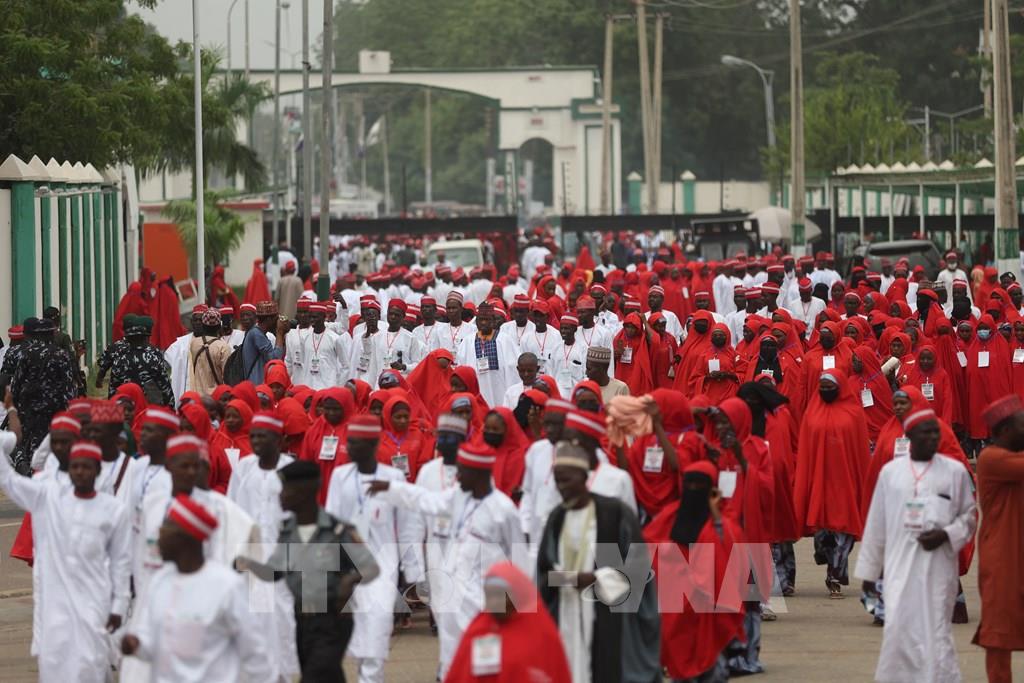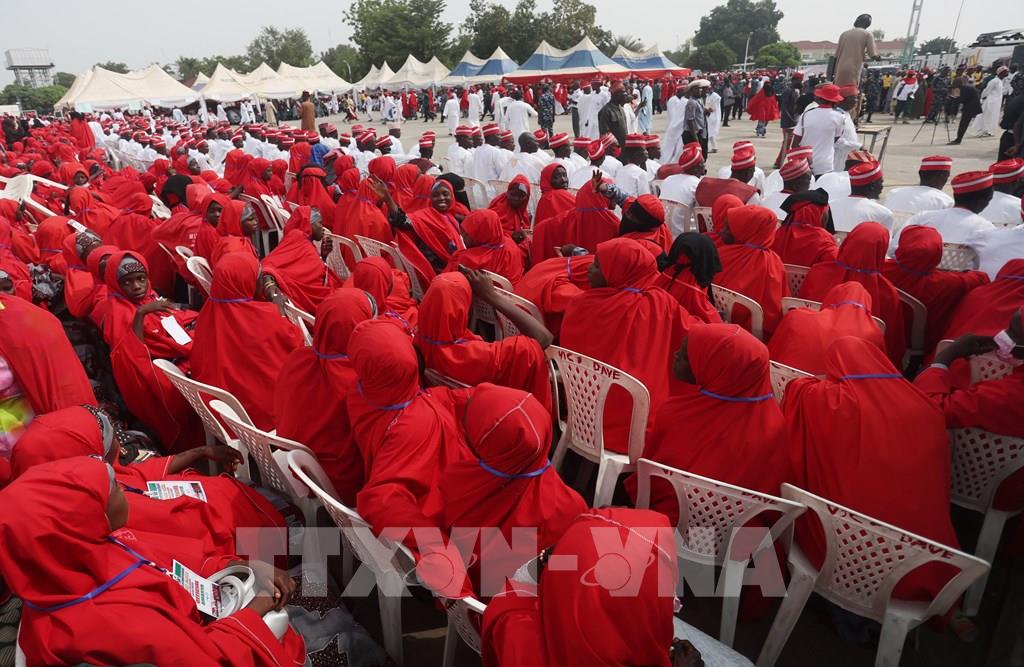 Ngày 14/10/2023, chính quyền bang Kano, miền Bắc Nigeria đã tổ chức đám cưới tập thể cho 1.800 cặp đôi. Buổi lễ diễn ra trang trọng tại các nhà thờ Hồi giáo trên toàn bang. Các chú rể khoác lên mình áo choàng trắng truyền thống và đội mũ đỏ sánh đôi với các cô dâu trong trang phục áo choàng dài với khăn che mặt màu đỏ tươi. Đây là một trong những nỗ lực của giới chức địa phương nhằm tạo điều kiện cho những người nghèo nhất cũng có cơ hội tổ chức đám cưới. Ảnh: AFP/TTXVN