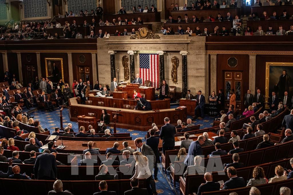 Bất đồng nội bộ trong đảng Cộng hòa khiến Hạ viện Mỹ bước sang ngày thứ 15 mà không có một Chủ tịch chính thức, khi Hạ nghị sĩ Jim Jordan, Chủ tịch Ủy ban Tư pháp Hạ viện lại thất bại trong cuộc bỏ phiếu thứ hai diễn ra trong ngày 18/10/2023. Ảnh: Phiên bỏ phiếu bầu Chủ tịch Hạ viện Mỹ ngày 18/10/2023. THX/TTXVN