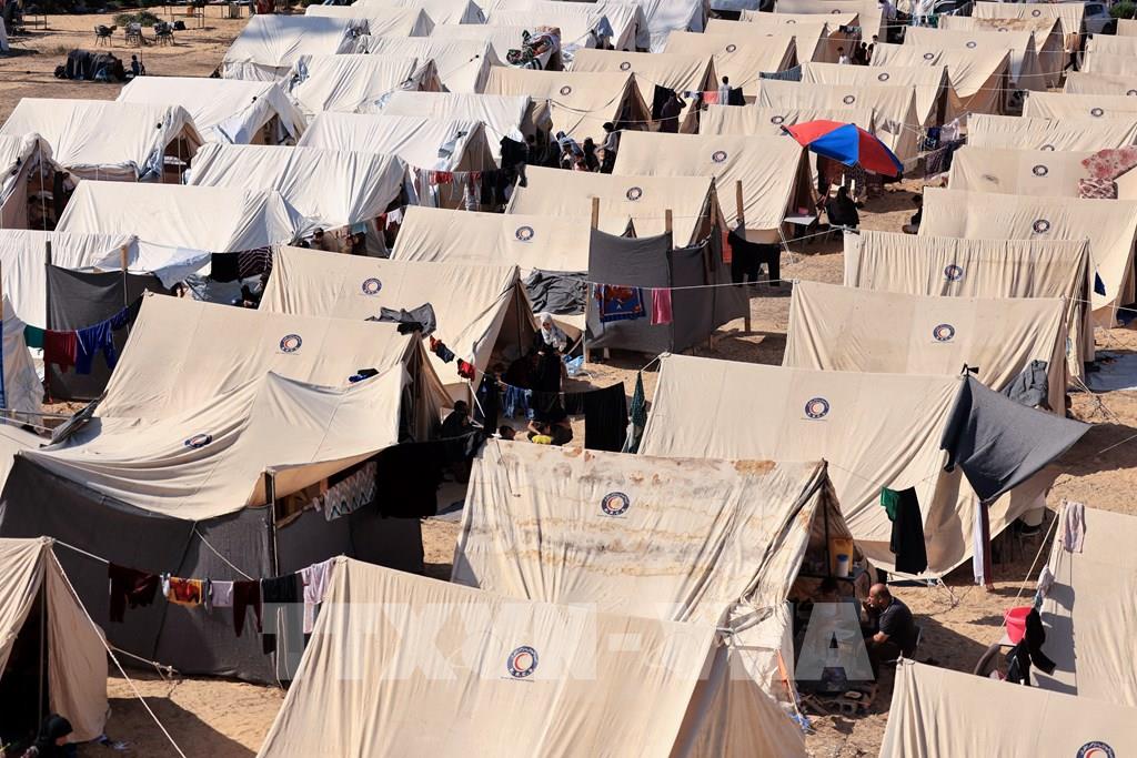 Liên hợp quốc (LHQ) ngày 15/10/2023 cho biết yêu cầu sơ tán của Israel đối với người dân Palestine sống ở phía Bắc Dải Gaza đã gây ra sự “tản cư ồ ạt” về phía Nam của dải đất này. Trước đó, Israel đã yêu cầu 1,1 triệu người Palestine rời khỏi miền Bắc Gaza. Ảnh: Khu lều tạm cho người tị nạn Palestine tại Khan Yunis, miền Nam Dải Gaza ngày 19/10/2023. Ảnh: AFP/TTXVN