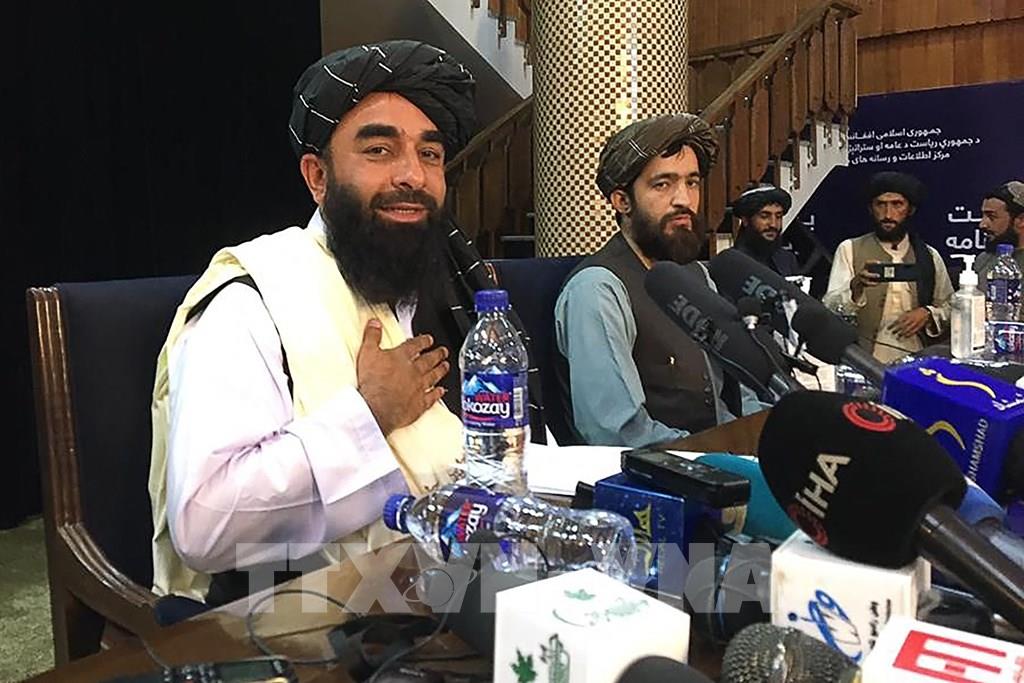 Ngày 17/8/2021, tại thủ đô Kabul, phong trào Taliban đã tổ chức cuộc họp báo chính thức đầu tiên kể từ khi giành chính quyền ở Afghanistan, trong đó cam kết nhiều vấn đề được đánh giá là đổi mới so với thời kỳ phong trào Hồi giáo cực đoan này cầm quyền cách đây 20 năm. Người phát ngôn phong trào Taliban Zabihullah Mujahid (ảnh, trái) khẳng định nhiệm vụ quan trọng hiện nay là ổn định tình hình và thành lập một Chính phủ. Taliban mong muốn xây dựng mối quan hệ hòa bình với các quốc gia khác. Đặc biệt, đại diện của Taliban cam kết sẽ tôn trọng các quyền của phụ nữ phù hợp với luật Hồi giáo, phụ nữ được làm việc và học tập, trẻ em được tự do tới trường. Ảnh: AFP/ TTXVN