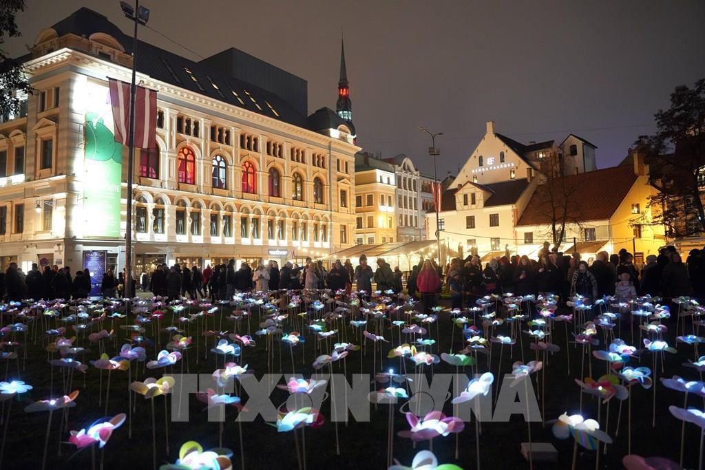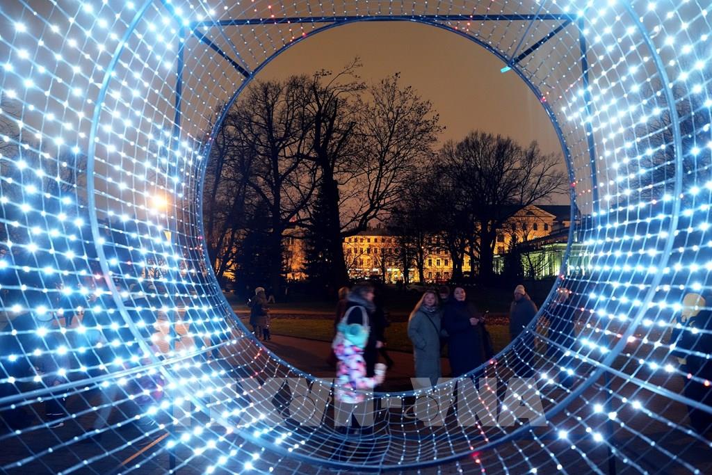 Lễ hội ánh sáng "Staro Riga 2025" diễn ra từ ngày 15-18/11/2025 tại thành phố Riga, Latvia. Sự kiện đã biến thành phố thành một triển lãm ánh sáng ngoài trời, với hơn 40 tác phẩm và cài đặt ánh sáng tương tác được thực hiện bởi các nghệ sĩ địa phương và quốc tế. Ảnh: THX/TTXVN