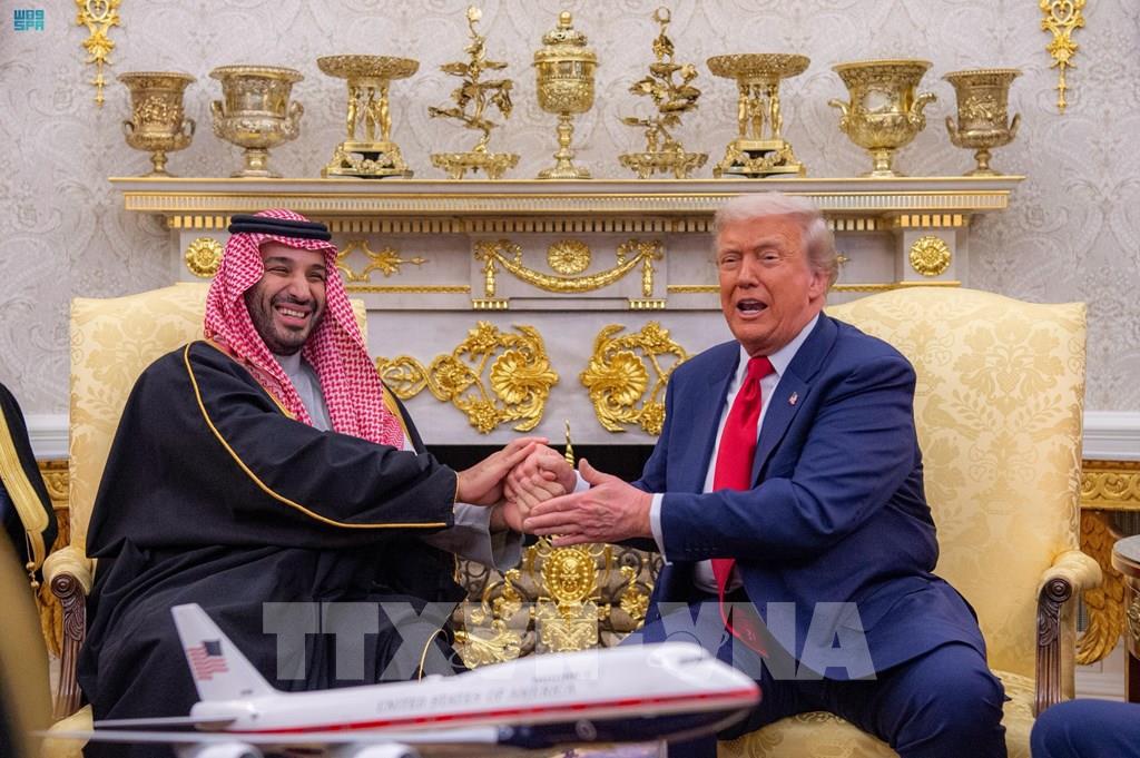 Ngày 19/11/2025, Saudi Arabia và Mỹ ký kết thỏa thuận có tên là "Quan hệ đối tác chiến lược về trí tuệ nhân tạo" (AI), đánh dấu một bước tiến lịch sử trong quan hệ song phương. Ảnh: Thái tử kiêm Thủ tướng Saudi Arabia Mohammed bin Salman (trái) trong cuộc gặp Tổng thống Mỹ Donald Trump tại Washington DC., ngày 18/11/2025. SPA/TTXVN