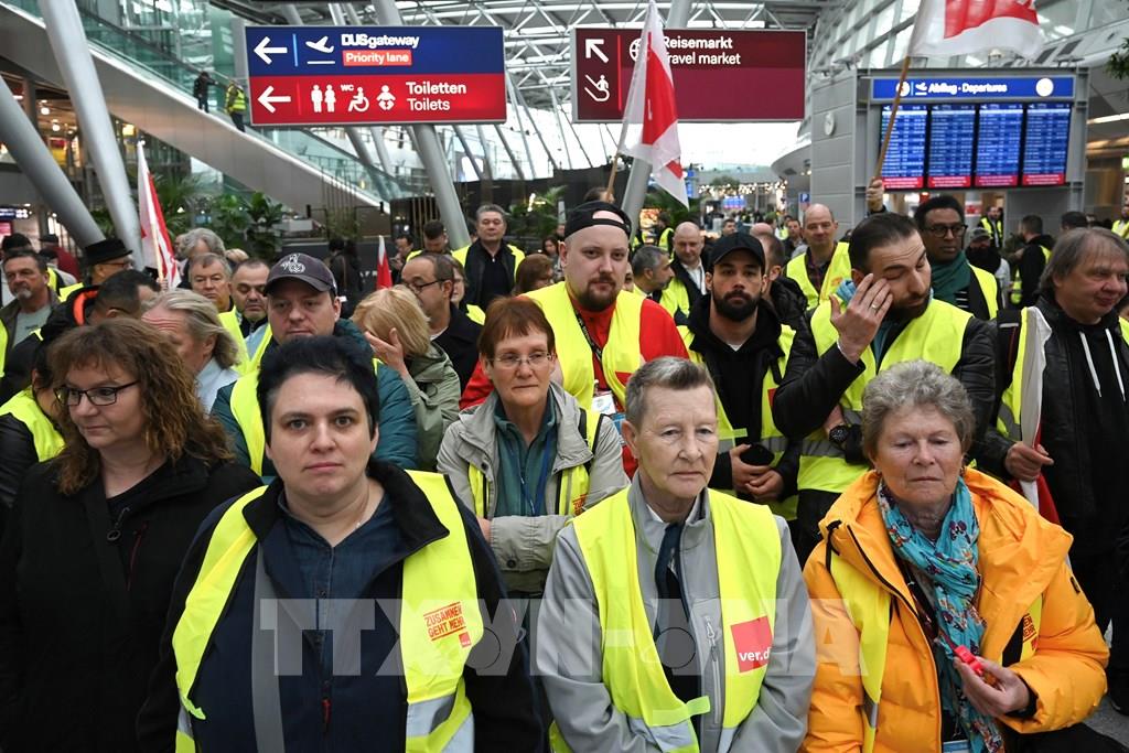 Làn sóng đình công đang diễn ra tại nhiều nước ở châu Âu và châu Mỹ khi người lao động yêu cầu tăng lương để ứng phó với "bão giá" do lạm phát tăng cao. Tại Đức, nghiệp đoàn Verdi, đại diện cho khoảng 2,5 triệu người lao động, cũng đã kêu gọi các nhân viên kiểm soát an ninh đình công tại 4 sân bay trong hai ngày 20 và 21/4. Ảnh: AFP/ TTXVN