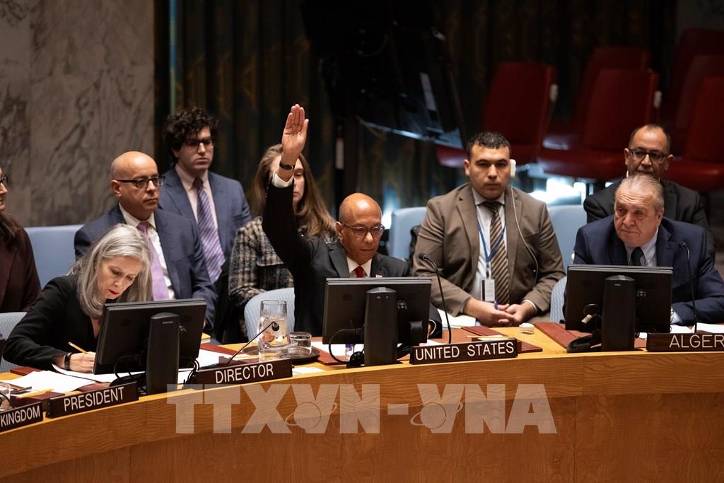 Tối 20/11/2024 (giờ Việt Nam), Mỹ đã phủ quyết nỗ lực của Hội đồng Bảo an Liên hợp quốc (HĐBA LHQ) thông qua nghị quyết kêu gọi ngừng bắn "ngay lập tức, vô điều kiện và vĩnh viễn" tại Dải Gaza. Đại sứ Mỹ tại LHQ Robert Wood (ảnh, giữa) nhấn mạnh: "Chúng tôi đã nêu rõ trong suốt quá trình đàm phán rằng chúng tôi không thể ủng hộ lệnh ngừng bắn vô điều kiện mà không đảm bảo việc thả các con tin". Ảnh: THX/TTXVN