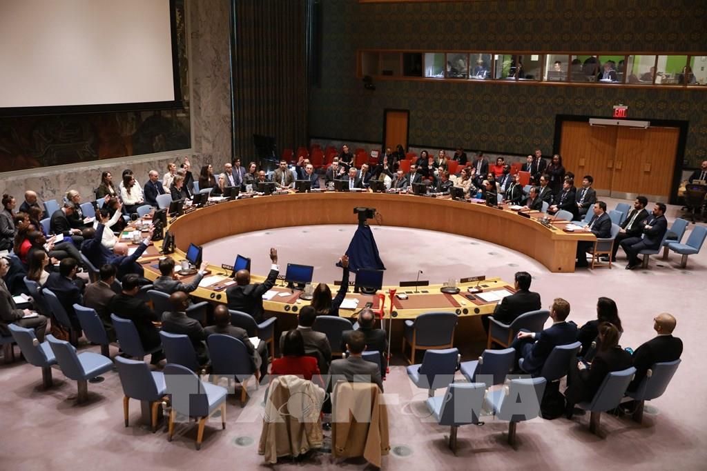 Tối 20/11/2024 (giờ Việt Nam), Mỹ đã phủ quyết nỗ lực của Hội đồng Bảo an Liên hợp quốc (HĐBA LHQ) thông qua nghị quyết kêu gọi ngừng bắn "ngay lập tức, vô điều kiện và vĩnh viễn" tại Dải Gaza. Ảnh: Phiên họp HĐBA LHQ ở New York, Mỹ. THX/TTXVN