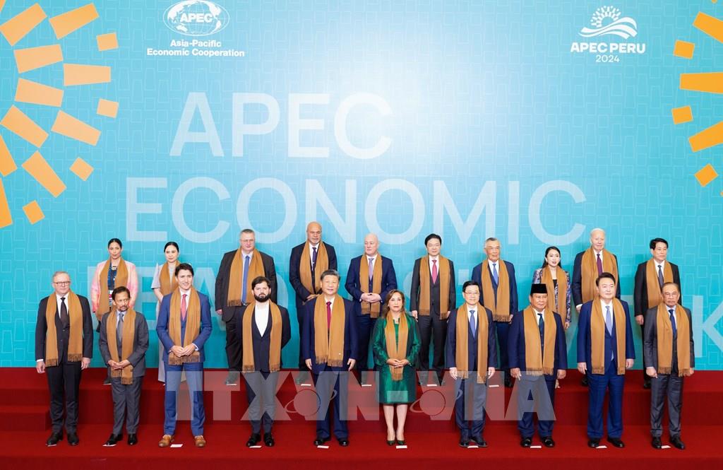 Lãnh đạo các nền kinh tế thành viên Diễn đàn Hợp tác Kinh tế châu Á-Thái Bình Dương (APEC) ngày 17/11/2024 ra tuyên bố chung kêu gọi hợp tác đa phương hiệu quả để đối phó với nhiều thách thức trong các lĩnh vực thương mại và đầu tư, môi trường, an ninh lương thực, an ninh năng lượng. Tuyên bố cũng nhắc lại cam kết đẩy nhanh tiến trình thực thi đầy đủ Hiệp định tạo thuận lợi thương mại của Tổ chức Thương mại Thế giới (WTO). Ảnh: THX/TTXVN