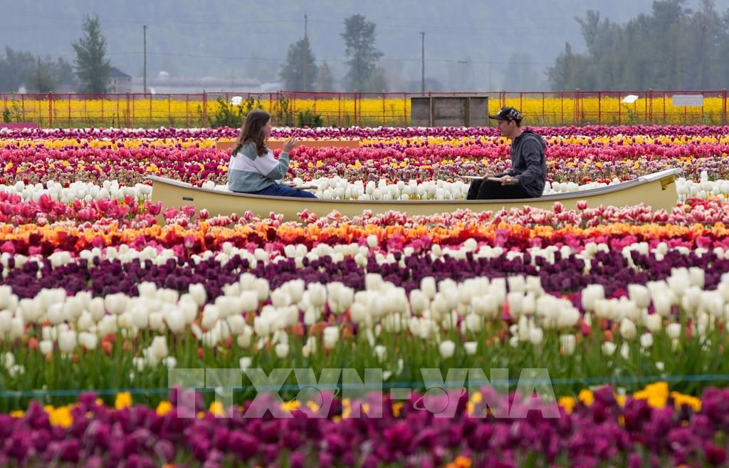 Lễ hội hoa tulip Abbotsford diễn ra tại Abbotsford, British Columbia, Canada, là một trong những lễ hội mùa xuân nổi tiếng với hàng triệu bông hoa tulip khoe sắc. Lễ hội thường bắt đầu vào tháng 4, trải dài trên diện tích rộng lớn với hơn 100 giống hoa khác nhau, tạo nên bức tranh thiên nhiên rực rỡ. Ảnh: THX/TTXVN