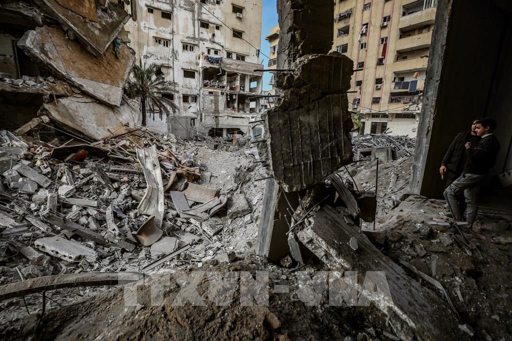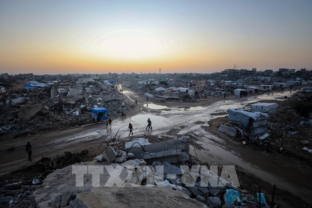 Liên hợp quốc (LHQ) và Liên minh châu Âu (EU) ngày 20/4/2026 công bố báo cáo ghi nhận cần 71,4 tỷ USD trong thập kỷ tới để phục hồi và tái thiết Dải Gaza, khu vực bị tàn phá bởi xung đột trong thời gian qua. Ảnh: Cảnh tàn phá do xung đột tại Gaza. THX/TTXVN
