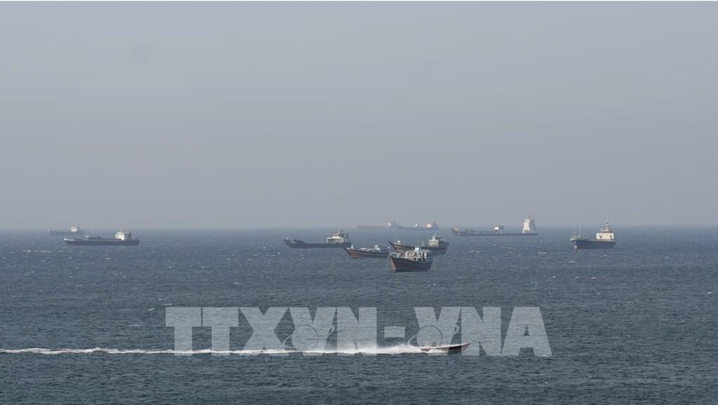 Tổng thống Donald Trump ngày 19/4/2026 thông báo Mỹ đã bắt giữ một tàu chở hàng treo cờ Iran tại Vịnh Oman, khi con tàu này tìm cách vượt qua lệnh phong tỏa của Mỹ. Ảnh: Tàu thuyền di chuyển trên eo biển Hormuz, ngoài khơi tỉnh Musandam, Oman, ngày 18/4/2026. REUTERS/TTXVN