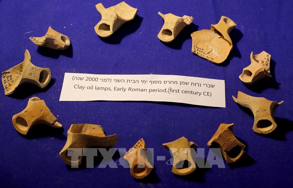 Giới khảo cổ Israel ngày 19/5/2020 cho biết đã phát hiện những căn phòng bí ẩn dưới lòng đất từ một tầng đá nền ở khu vực gần Đền thờ Do Thái thứ hai, được cho là xuất hiện từ đầu thời kỳ La Mã cách đây hai thiên niên kỷ. Trong ảnh: Đèn dầu bằng đất nung được phát hiện bên trong căn phòng cổ dưới lòng đất tại Jerusalem, ngày 19/5/2020. Ảnh: THX/TTXVN