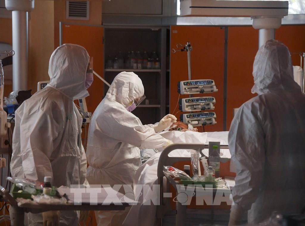 Theo thống kê của trang worldometers.info, đến sáng 22/5/2020 (giờ Việt Nam), số ca nhiễm bệnh viêm đường hô hấp cấp COVID-19 trên toàn thế giới đã lên tới 5.189.488 người, trong đó 334.092 ca tử vong. Trong ảnh: Nhân viên y tế điều trị cho bệnh nhân COVID-19 tại bệnh viện ở Rome, Italy, ngày 25/3/2020. Ảnh: THX/ TTXVN