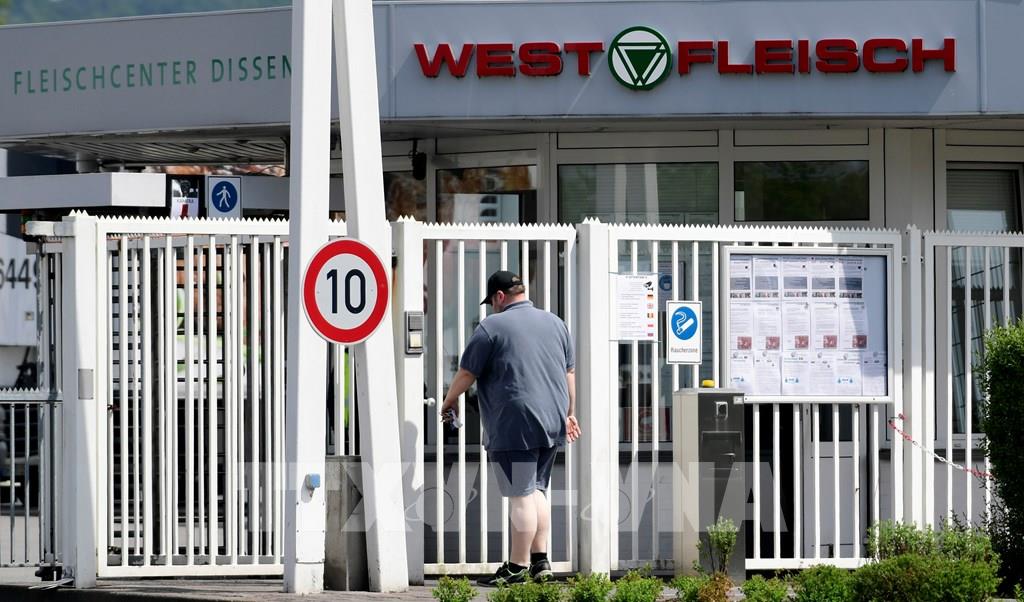Chính phủ Đức ngày 20/5/2020 đã nhất trí ban hành các quy định nghiêm ngặt hơn đối với ngành công nghiệp chế biến thịt, sau khi dịch COVID-19 bùng phát trở lại tại lò mổ ở một số địa phương. Trong ảnh: Công ty chế biến thịt Westfleisch ở Dissen, miền Tây Đức ngày 18/5/2020. Ảnh: AFP/TTXVN