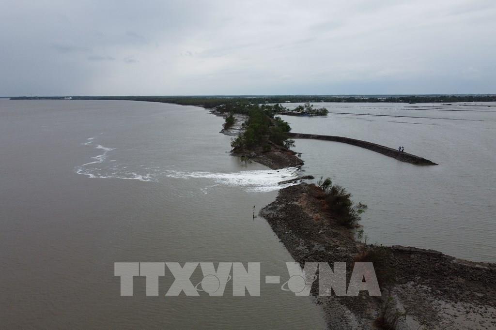 Ngày 21/5/2020, giới chức Ấn Độ cho biết ít nhất 84 người đã thiệt mạng tại miền Đông nước này sau khi siêu bão Amphan kèm lốc xoáy càn quét các vùng duyên hải nước này và quốc gia láng giềng Bangladesh. Tại Bangladesh, ít nhất 10 người đã thiệt mạng kể từ khi bão Amphan đổ bộ đêm 20/5, trong khi 2,4 triệu người dân phải đi sơ tán. Trong ảnh: Đập bị vỡ sau khi bão Amphan đổ bộ tại Burigoalini, Bangladesh ngày 21/5/2020. Ảnh: AFP/TTXVN