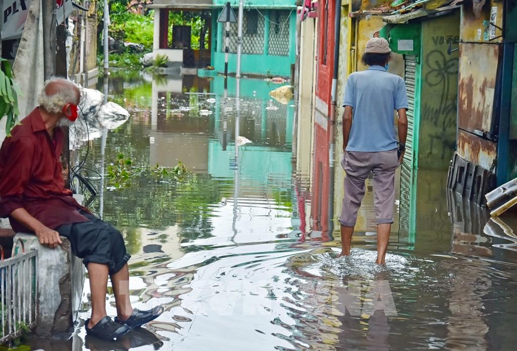 Ngày 21/5/2020, giới chức Ấn Độ cho biết ít nhất 84 người đã thiệt mạng tại miền Đông nước này sau khi siêu bão Amphan kèm lốc xoáy càn quét các vùng duyên hải nước này và quốc gia láng giềng Bangladesh. Tại Bangladesh, ít nhất 10 người đã thiệt mạng kể từ khi bão Amphan đổ bộ đêm 20/5, trong khi 2,4 triệu người dân phải đi sơ tán. Trong ảnh: Cảnh ngập lụt sau mưa lớn do ảnh hưởng của bão Amphan tại Kolkata, Ấn Độ, ngày 21/5/2020. Ảnh: ANI/ TTXVN