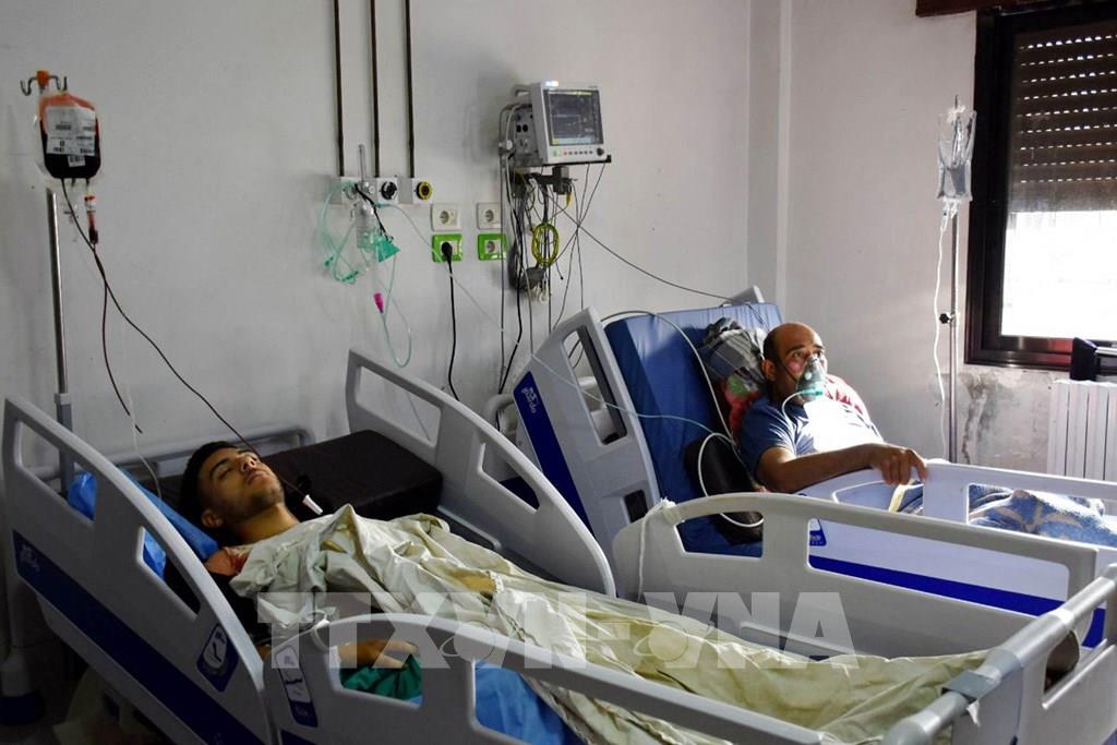 Bộ Quốc phòng Syria cho biết một vụ tấn công bằng thiết bị bay không người lái nhằm vào Học viện quân sự ở tỉnh Homs, miền Trung nước này ngày 5/10/2023 đã khiến ít nhất 100 dân thường và quân nhân thiệt mạng, 125 người bị thương. Ảnh: Những người bị thương trong vụ tấn công bằng máy bay không người lái nhằm vào Học viện quân sự Syria được điều trị tại bệnh viện ở Homs, ngày 5/10/2023. Ảnh: AFP/TTXVN