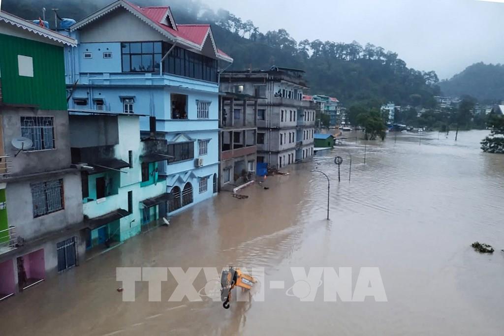 Ngày 5/10/2023, giới chức Ấn Độ cho biết trận lũ quét ở bang Sikkim, Đông Bắc nước này, đã làm ít nhất 14 người thiệt mạng. Bên cạnh đó, 102 người, trong đó có 22 binh sĩ, đang mất tích và 22.000 người bị ảnh hưởng. Ảnh: Ngập lụt do lũ quét ở bang Sikkim, Ấn Độ ngày 4/10/2023. Ảnh: AFP/TTXVN