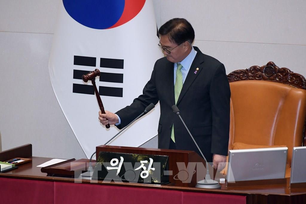 Ngày 5/12/2024, đảng Dân chủ (DP) đối lập chính ở Hàn Quốc thông báo sẽ tiến hành bỏ phiếu tại Quốc hội về dự luật luận tội Tổng thống Yoon Suk Yeol vào ngày 7/12. Người phát ngôn của đảng DP Cho Seung Rae cho biết quyết định trên được đưa ra tại cuộc họp Ủy ban Tối cao DP diễn ra sáng 5/12. Trong ảnh: Tòa nhà Quốc hội Hàn Quốc tại thủ đô Seoul. Ảnh: THX/TTXVN