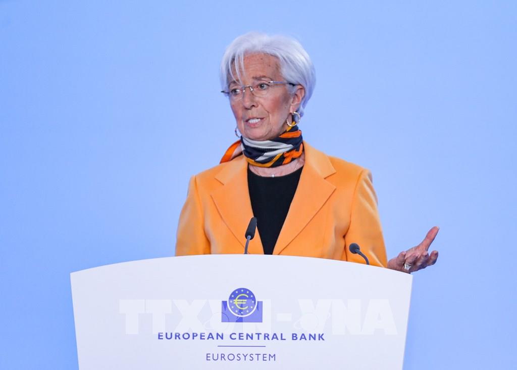 Ngày 6/3/2025, Ngân hàng Trung ương châu Âu (ECB) hạ lãi suất lần thứ 6 liên tiếp kể từ tháng 6 năm ngoái khi đưa lãi suất tiền gửi chủ chốt giảm thêm 0,25 điểm phần trăm, xuống còn 2,5%. Ảnh: Chủ tịch ECB Christine Lagarde công bố quyết định hạ lãi suất trong cuộc họp báo tại Frankfurt, Đức. THX/TTXVN