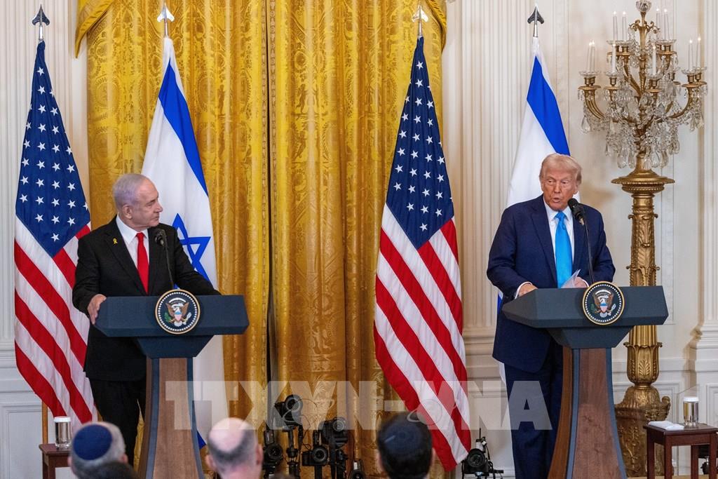 Ngày 5/3/2025, Tổng thống Mỹ Donald Trump cảnh báo Dải Gaza sẽ tiếp tục hứng chịu thêm tổn thất nếu Phong trào Hồi giáo Hamas không trả tự do cho tất cả các con tin còn lại. Ông Trump cũng nhấn mạnh “đây là lời cảnh báo cuối” đối với Hamas, đồng thời yêu cầu lực lượng này rời khỏi Gaza. Ảnh: Tổng thống Mỹ Donald Trump (phải) trong cuộc họp báo chung với Thủ tướng Israel Benjamin Netanyahu ở Washington D.C., ngày 4/2/2025. THX/TTXVN