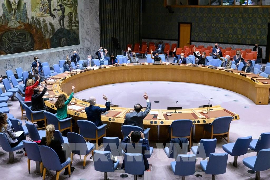 Ngày 22/12/2021, Hội đồng Bảo an Liên hợp quốc đã thông qua nghị quyết nhằm tạo điều kiện thuận lợi cho hoạt động cứu trợ nhân đạo cho Afghanistan trong phiên họp tại New York (Mỹ). Nghị quyết cho phép giải ngân các khoản hỗ trợ, các tài sản tài chính hoặc các nguồn lực kinh tế khác; cung cấp nhiều loại hàng hóa và dịch vụ cần thiết để hỗ trợ trực tiếp hoặc đảm bảo những hoạt động hỗ trợ trên được thực hiện đúng lịch trình. Ảnh: THX/TTXVN