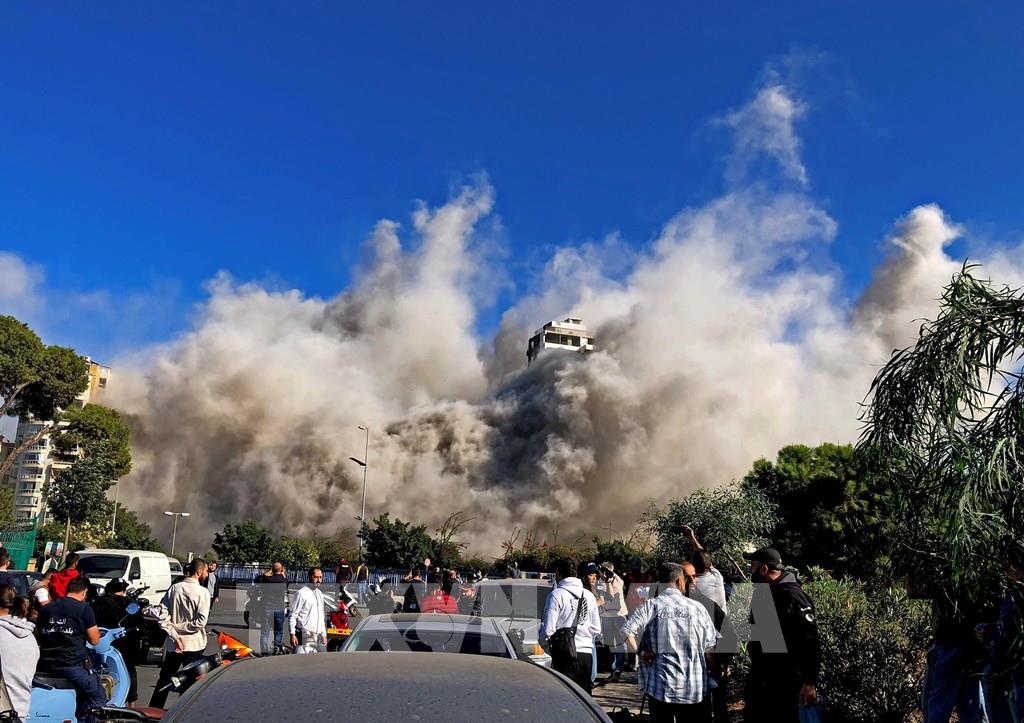 Ngày 20/10/2024, máy bay chiến đấu của Israel đã dội bom xuống các chi nhánh của Al Qard Al Hassan - tổ chức tài chính có liên hệ với lực lượng Hezbollah ở Liban. Theo kênh truyền hình địa phương al-Jadeed, chi nhánh của Al Qard Al Hassan ở Chiyah, ngoại ô phía Nam thủ đô Beirut đã bị tấn công. Trong ảnh: Khói bốc lên sau cuộc không kích của Israel tại Beirut, Liban. Ảnh: THX/TTXVN