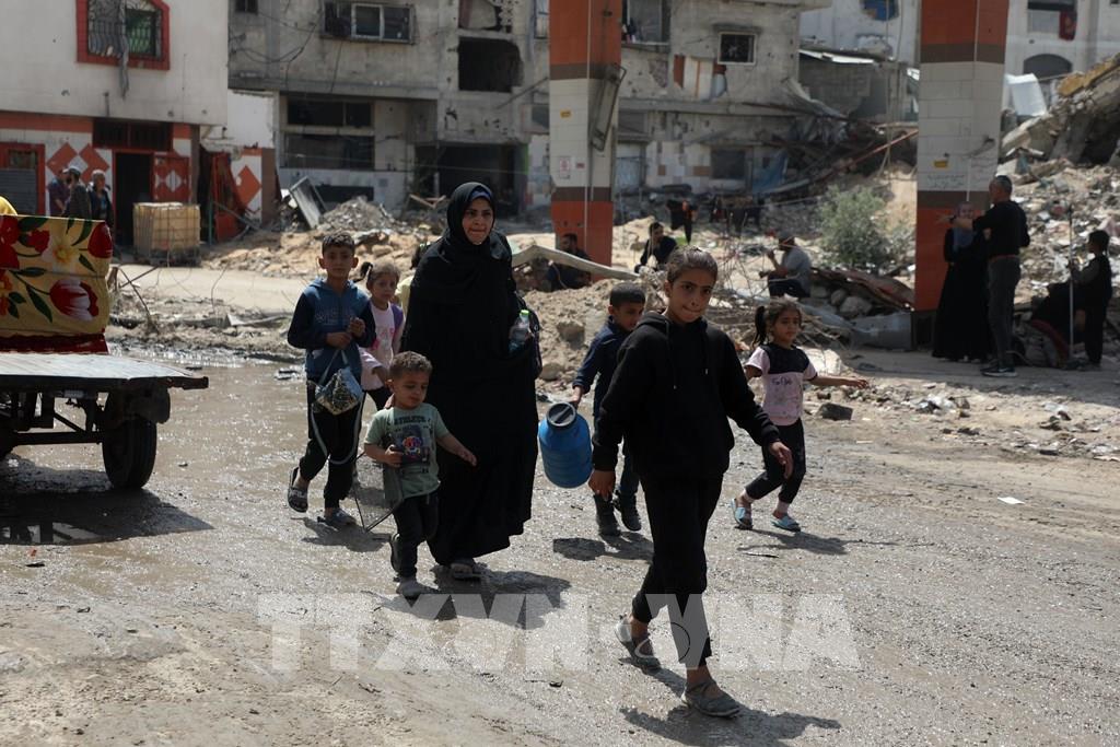 Cơ quan Cứu trợ và Việc làm của LHQ dành cho người tị nạn Palestine (UNRWA) ngày 24/4/2025 cho biết 69% diện tích Dải Gaza nằm trong các lệnh di dời đang có hiệu lực của Israel, đồng thời cho biết thêm cơ quan này đang vận hành 115 nơi trú ẩn trên khắp Gaza, cung cấp chỗ ở cho hơn 90.000 người phải di dời. Trong khi đó, cùng ngày, phía Palestine cho biết ít nhất 18 người đã thiệt mạng trên khắp Dải Gaza do các cuộc không kích mới nhất của Israel. Ảnh: Người dân di dời khỏi Shuja'iyya, khu lân cận thành phố Gaza, ngày 3/4. Ảnh: THX/TTXVN