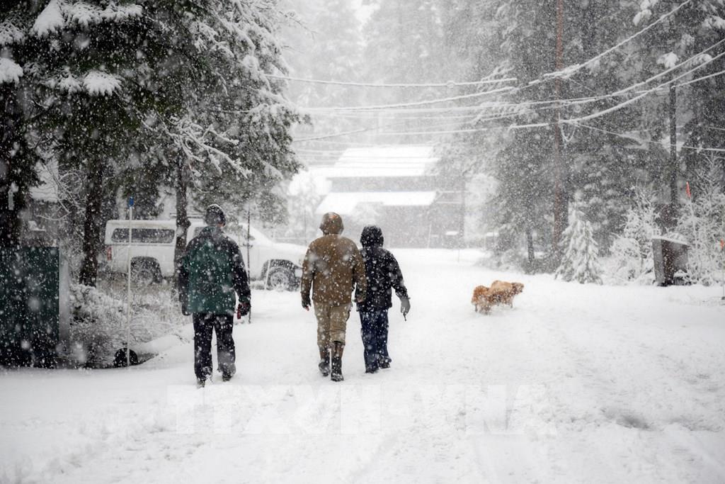 Một cơn bão mùa Đông mạnh đã tràn qua bang California của Mỹ vào ngày 24/12/2025, mang theo mưa lớn và gió giật mạnh, gây sạt lở bùn đất. Trong khi đó, ở phía Bắc bang, mưa lớn và tuyết dày gây điều kiện thời tiết nguy hiểm. Trong ảnh: Tuyết rơi dày đặc tại California, Mỹ. Ảnh: AA/TTXVN