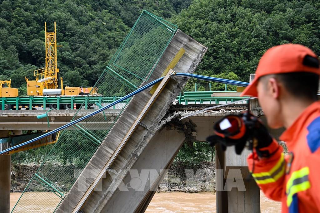 Ngày 21/7/2024, nhà chức trách Trung Quốc cho biết lực lượng cứu hộ đã tìm thấy thi thể 15 nạn nhân trong vụ sập cầu cao tốc do mưa lớn và lũ quét bất ngờ ở huyện Tạc Thủy, thành phố Thương Lạc, tỉnh Thiểm Tây. Ảnh: THX/TTXVN