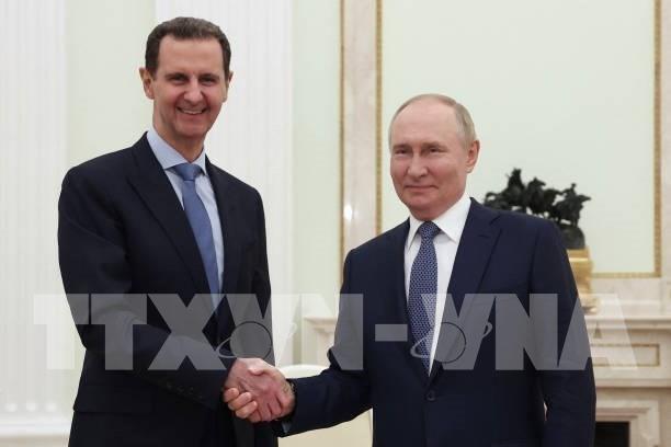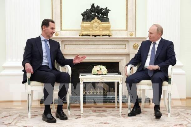 Ngày 24/7/2024, Tổng thống Nga Vladimir Putin (phải) đã có cuộc gặp với Tổng thống Syria Bashar al-Assad đang ở thăm Nga, trong đó hai nhà lãnh đạo thảo luận một loạt các vấn đề quan hệ song phương cũng như tình hình Trung Đông. Ảnh: Getty Images/TTXVN