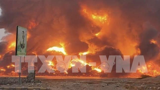 Quân đội Israel (IDF) ngày 20/7/2024 đã sử dụng máy bay chiến đấu tấn công cảng Hodeidah ở phần lãnh thổ Yemen do lực lượng Houthi kiểm soát, nhằm trả đũa vụ tấn công bằng máy bay không người lái nhằm vào thành phố Tel Aviv trước đó một ngày, khiến một người thiệt mạng. Ảnh: Khói lửa bốc lên ngùn ngụt sau vụ tấn công của Israel tại Hodeidah, Yemen ngày 20/7/2024. TV Al Masirah/ TTXVN